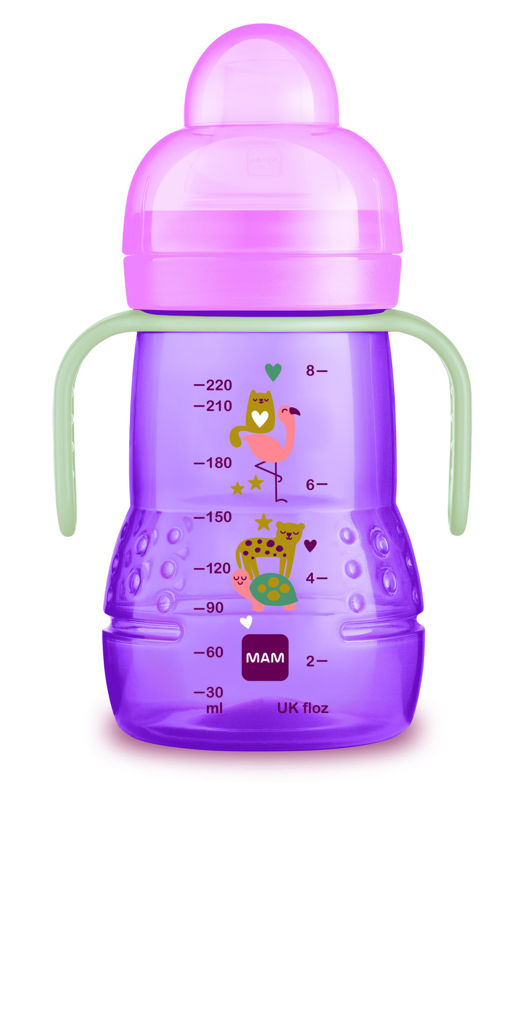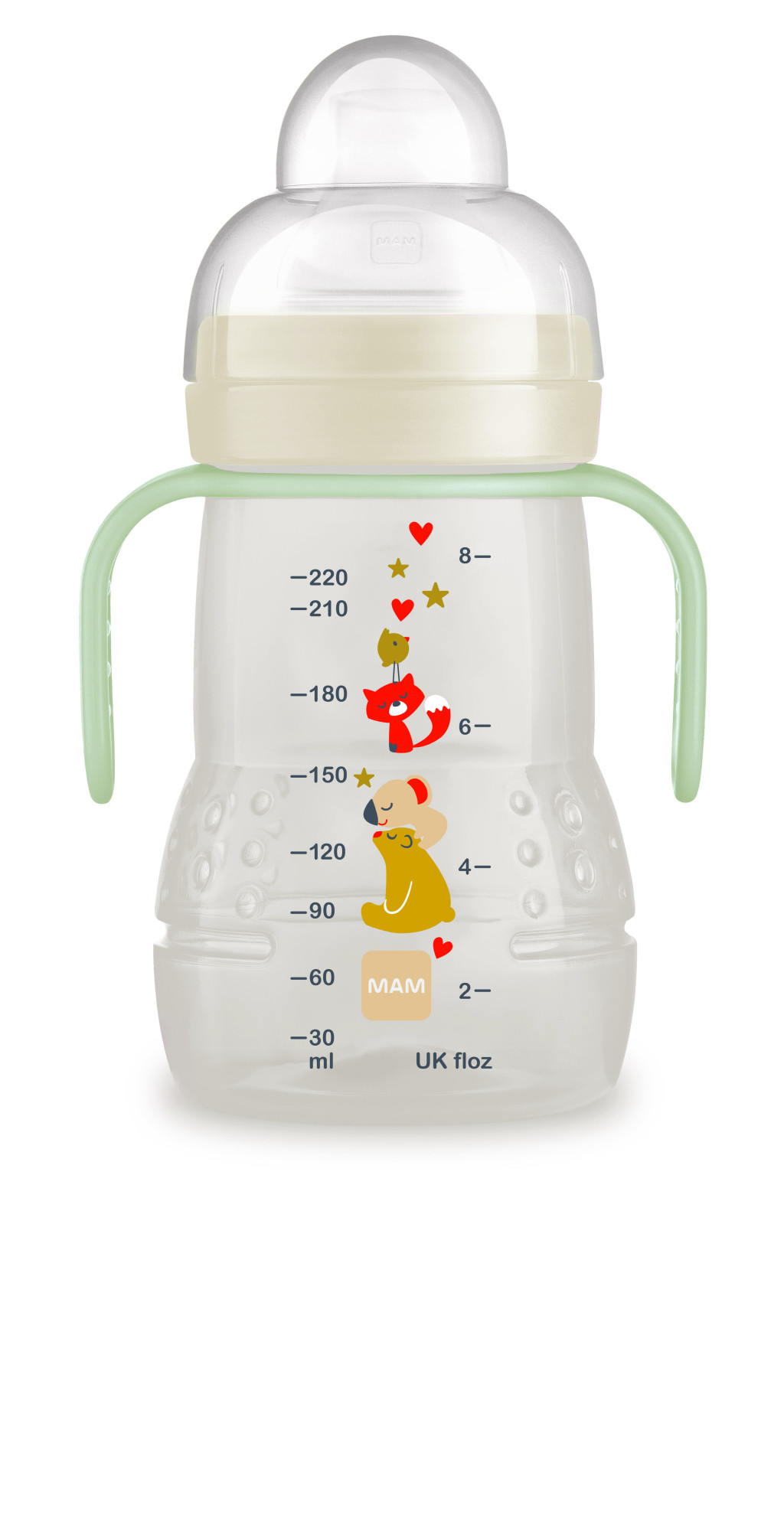 A MAM Trainer tanulópohár a sötétben világító fogókával, a funkcionalitás és dizájn tökéletes egysége.