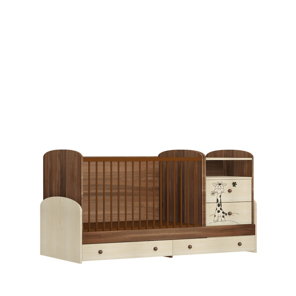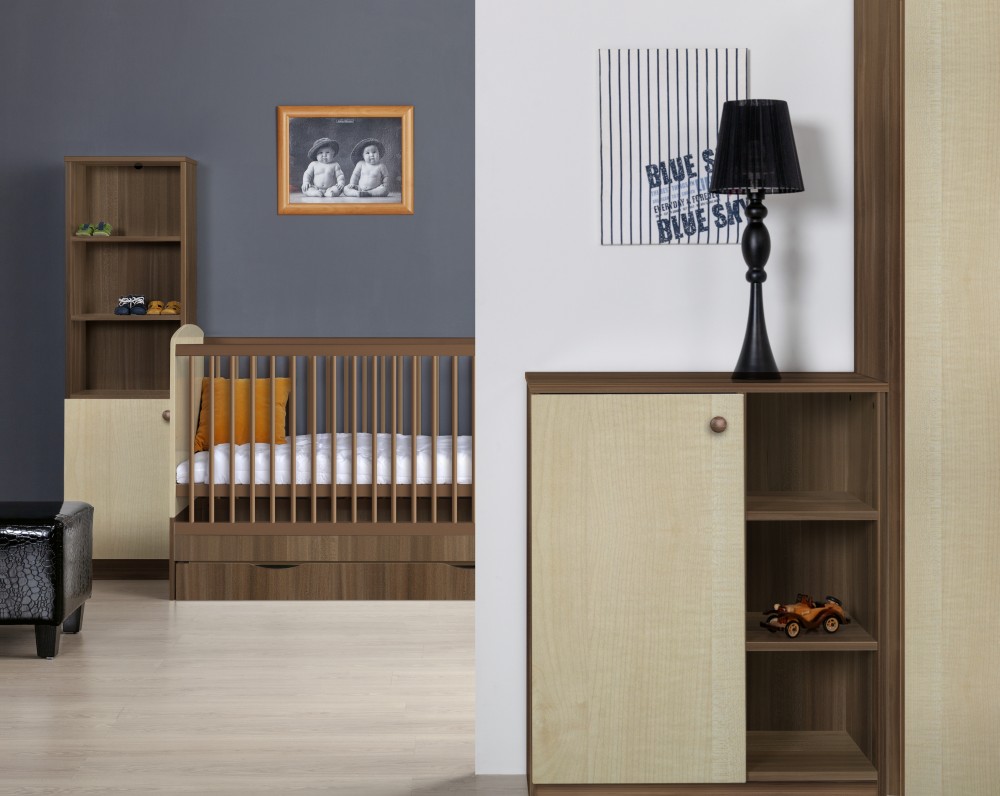Több lépésben átalakítható babaágy. Babaággyá, íróasztallá, heverővé és éjjeliszekrénnyé alakítható. Akár 18 éves korig is használható, a babaágy 50kg-ig, a heverő rész 90 kg-ig terhelhető. A babaágyhoz és a komódhoz opcionálisan magasító is rendelhető.