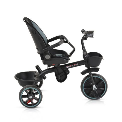 • További extrák a szórakozás és funkcionalitás érdekében: A zenei tábla hangélményt ad az utazásokhoz, míg két kosár (hátsó és első) elegendő helyet biztosít a játékok és egyéb szükséges tárgyak számára. A pohár- vagy üvegtartó kényelmes kiegészítő mozgás közben.