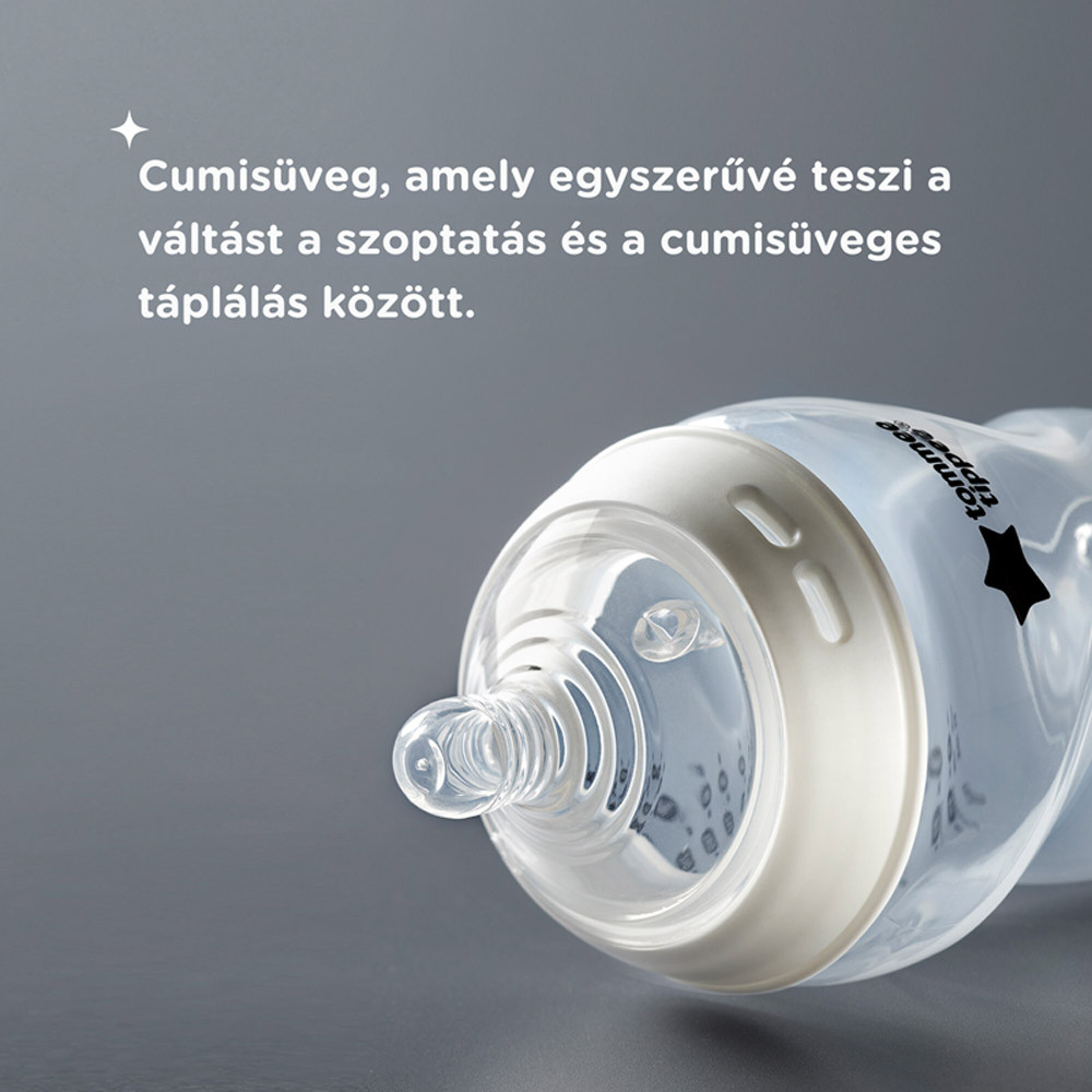 • Önsterilizáló: A TommeeTippeeNatural Start cumisüvegek egyszerűen, mindössze három perc alatt önsterilizálhatók a mikrohullámú sütőben.