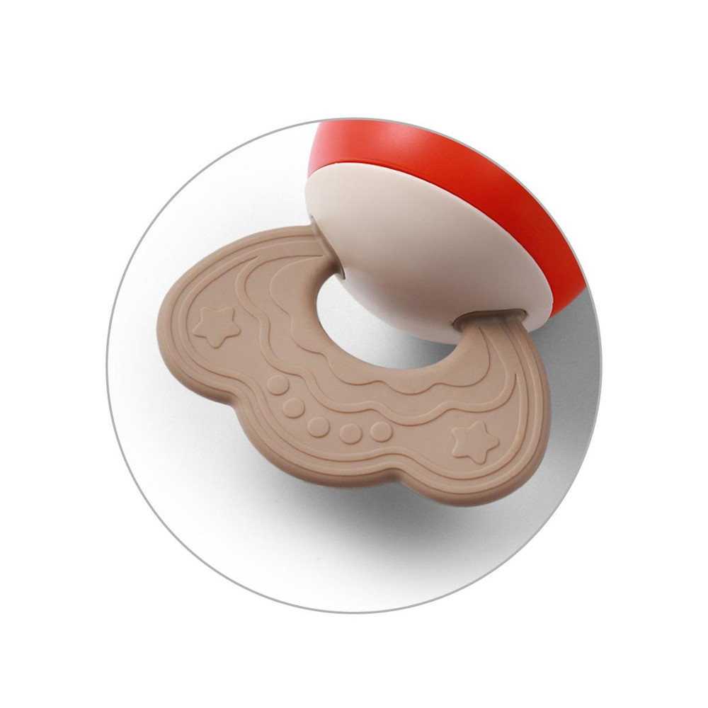 A kellemes tapintású szilikon rágóka gyengéden dörzsöli a baba ínyét, és enyhülést nyújt a fogzási időszakban.